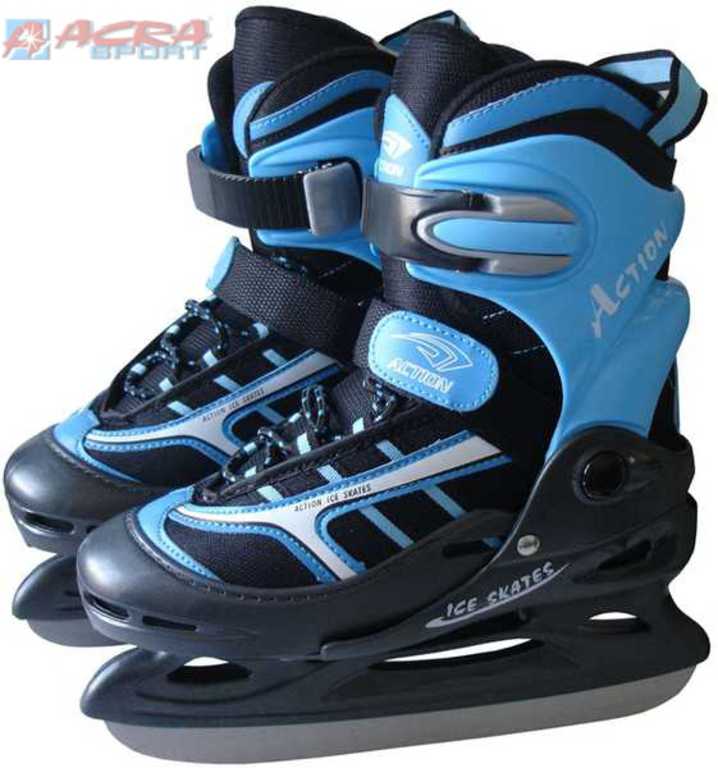 Hokejové brusle ACTION, roztahovací – 4 velikosti v jedné. Jednoduché nastavení boty na čtyři velikosti 30-33. Délka vnitřní stélky, při nejmenší nastavené velikosti, činí 18 cm. Brusle jsou tvořeny plastovým skeletem a vnitřní textilní botičkou, která má měkkou výstelku, pro zabezpečení nejvyššího komfortu. Pro dosažení řádného upevnění na nohu je k dispozici klasické šněrování, textilní přezka na suchý zip a plastová přezka. Brusle mají voděodpudivou povrchovou úpravu, které zabraňuje pronikání vlhkosti do boty a zároveň tak znemožňuje prochladnutí nohy. Přesto doporučujeme občas brusle naimpregnovat běžně dostupnými impregnačními prostředky. Brusle jsou určeny pro rekreační bruslení. Postup pro nastavení bruslí: Páčku, na spodní straně bruslí, vytočíme o 90 st., kolmo k noži. Po té, lze botu vytahovat a zatahovat, dle potřeby. Následně, je třeba páčku zajistit, do původní polohy tak, aby byla souběžně s nožem, brusle. ( Lze to učinit na jakoukoli stranu, hlavně musí být souběžně s nožem… )