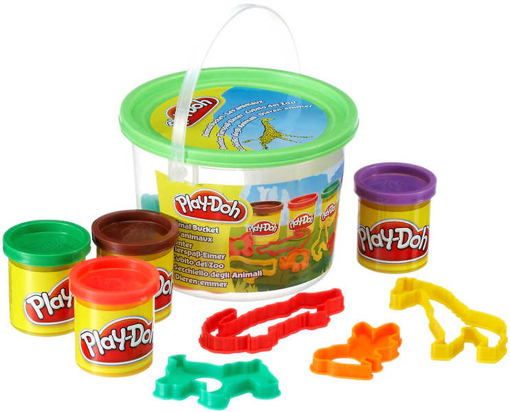 Na výběr jsou 4 tematicky laděné kbelíky, které obsahují 4 plechovky s modelínou, podložku a vykrajovátka (formičky)