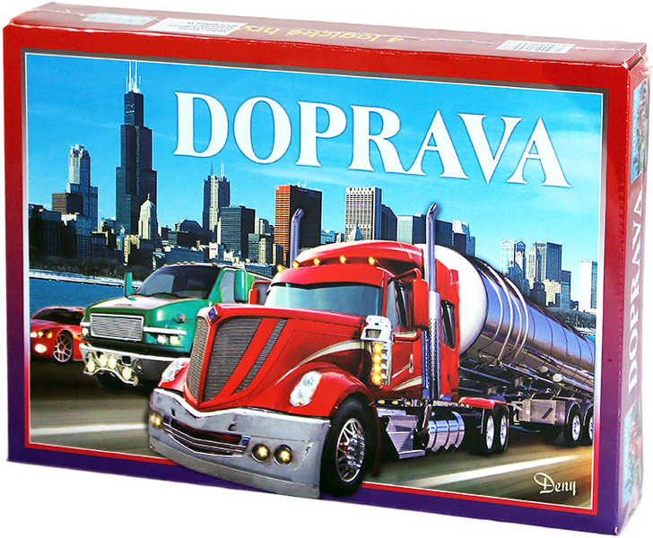 Sobor naučně-logických společenských her – DOPRAVA. Obsahuje součásti pro čtyři stolní hry.