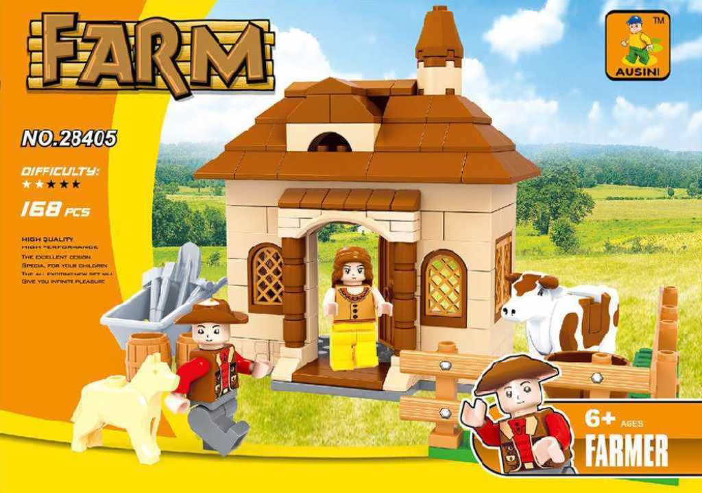 Stavebnice plastová FARMA s domečkem a zvířátky, jejíž součástí jsou dvě postavičky a další příslušenství