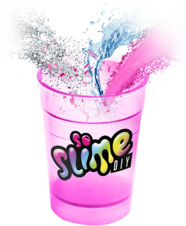 Vyrobte si svůj vlastní sliz. Nasypejte do kelímku prášek, přidejte glitry a figurku. Nalijte vodu až po rysku, zavřete kelímek a směs pořádně protřepejte. Pak kelímek otevřete a počkejte pět minut. Sliz je hotový. Kombinujte barvy, přidejte třpytky a užijte si tu pravou zábavu se slizem.