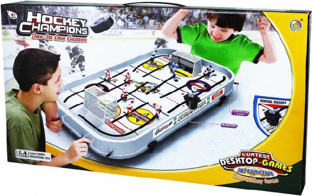 Stolní hokej je tu nejen pro hokejové fanoušky. Tato akční hra pro dva vám přinese spoustu napětí a zábavy. Buďte pozorní a rychlí, využijte plně všech svých 6 hráčů a dávajte soupeři gól za gólem. Užijte si hokej v hlavní roli s tímto stolním hokejem! Hra hokej je určena pro 2 hráče. Bez zvuku a automatického počítadla.