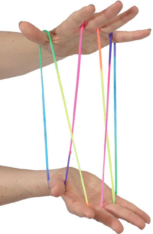 S magickým provázkem cradlerz můžete vyzkoušet různé triky, můžete jej proplétat mezi prsty, natahovat, vytvářet různé tvary nebo jej pomocí chytrých hmatů předat dalšímu hráči.