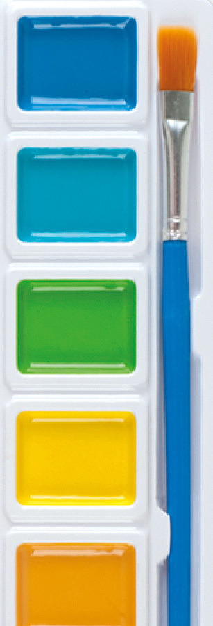 Obsah balení: předlohy k vybarvení, vodové barvy, štětec