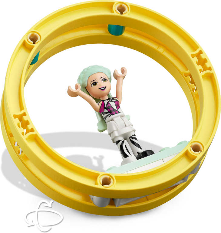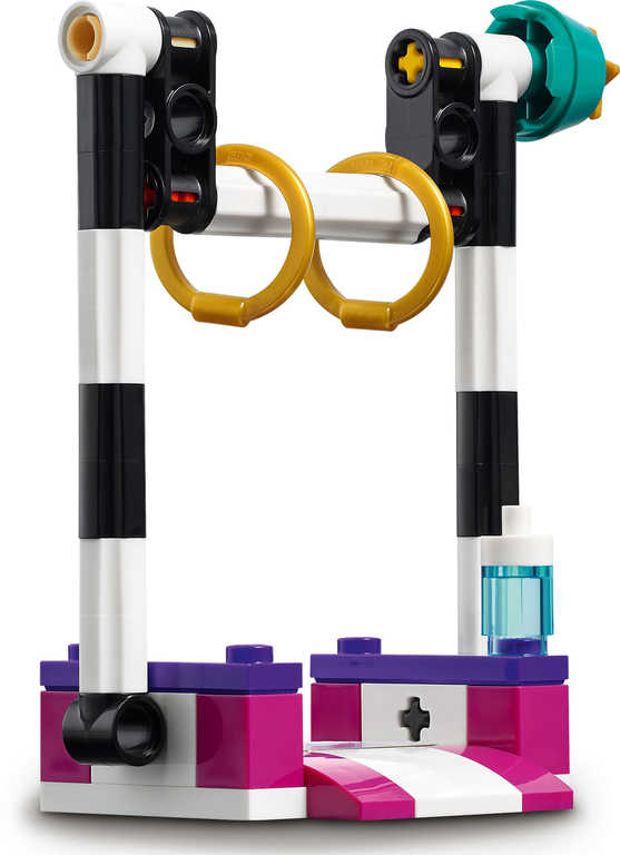 dráha, karavan nebo stánky. Tato stavebnice uchvátí nejen malé gymnastky. Parádní triky, které minifigurky v tematických kostýmech na otáčecí hrazdě, v otáčecím kruhu a také na chůdách umí, zaujmou