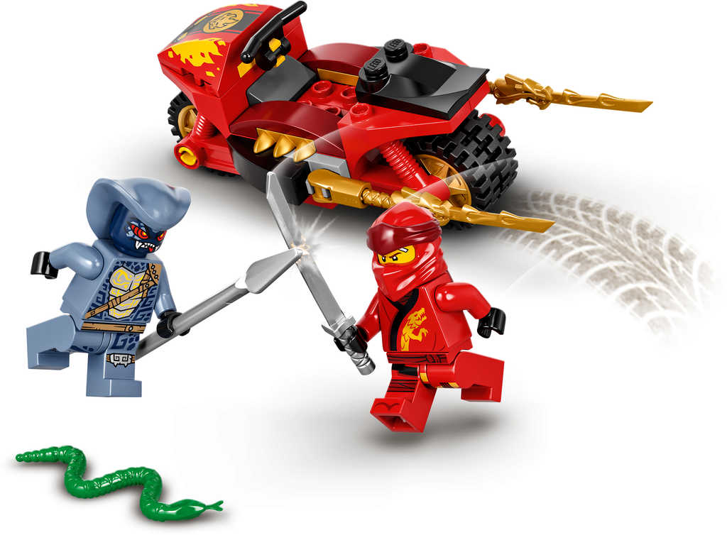 jízdu na Kaiově LEGO motorce s čepelemi a odrovnej hadího válečníka Rattlu i s jeho vystřelovačem.