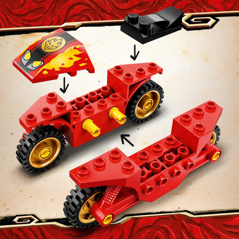 Obsah balení: Kaiova motorka, minifigurka Kaie a Rattly, návod