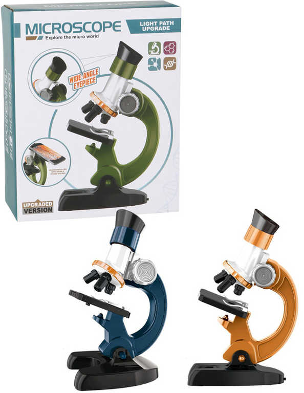 Mikroskop dětský 100x/400x/1200x na baterie set s doplňky 3 barvy