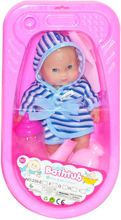 Miminko panenka v župánku 32cm koupací set s vaničkou a doplňky 2 barvy plastMiminko panenka v župánku 32cm koupací set s vaničkou a doplňky 2 barvy plast