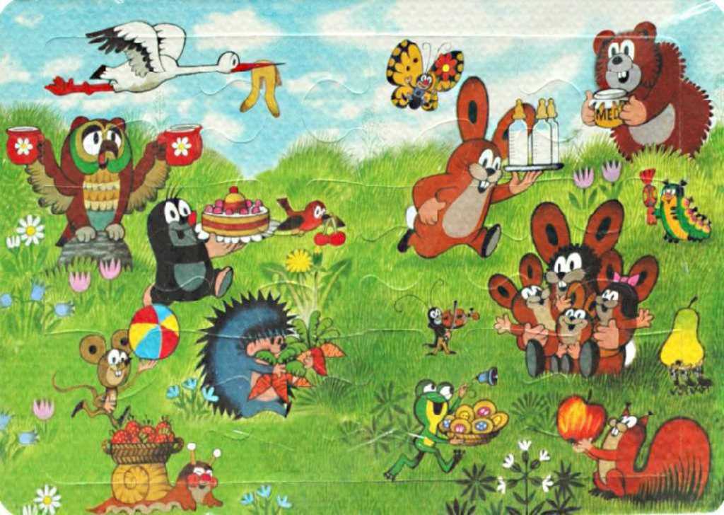 Lehká soft skládačka KRTEK z pěny – sada 12ti dílků s motivem Krtečka a jeho přátel, ve dvou motivech obrázku.