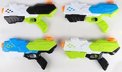 Dětská barevná plastová letní zbraň na vodu, ve čtyřech barevných kombinacích. Baleno v sáčku.