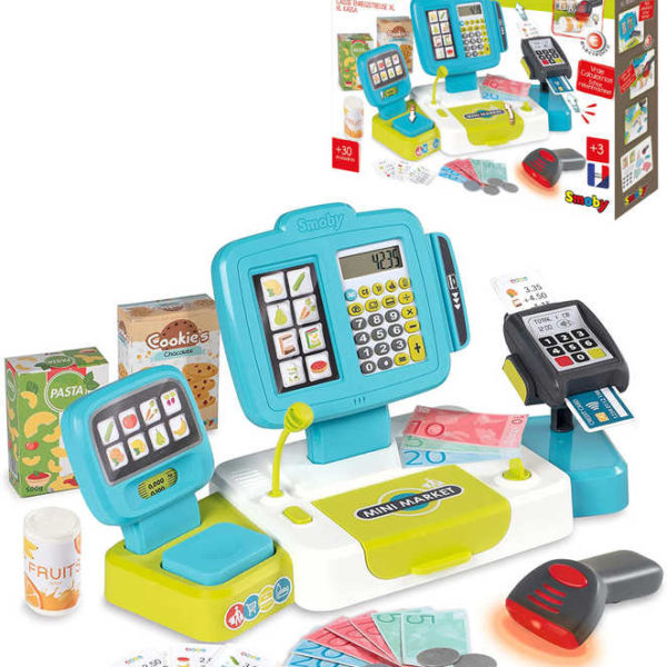 Pokladna elektronická Large Cash Register od francouzského výrobce Smoby je nezbytným doplňkem pro každého malého obchodníka a prodavače od 3 let. Nadčasová pokladna v krásném tyrkysovém