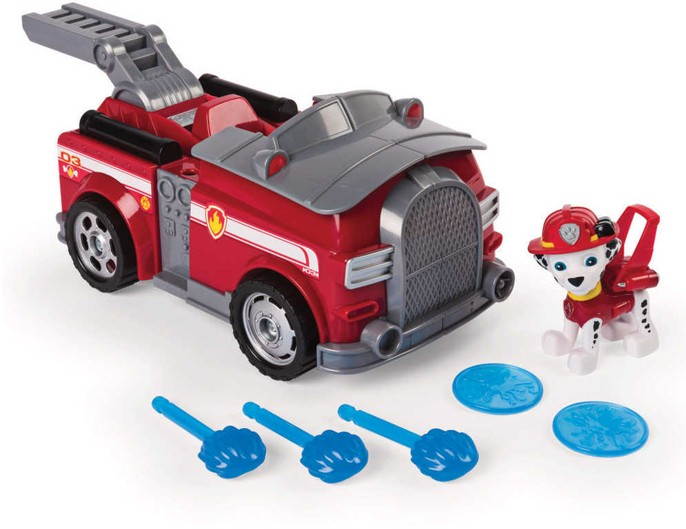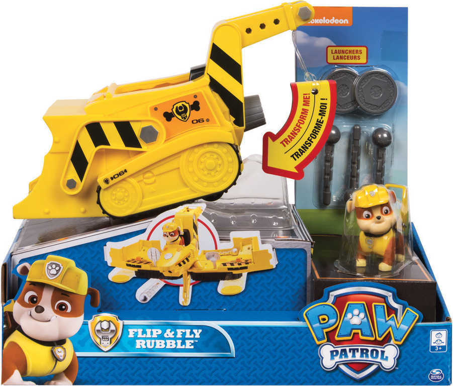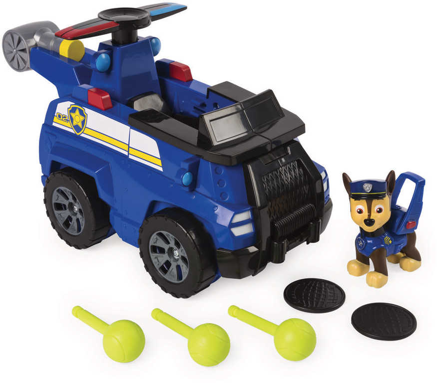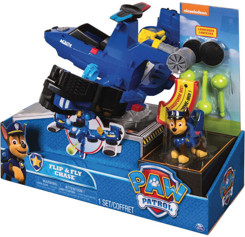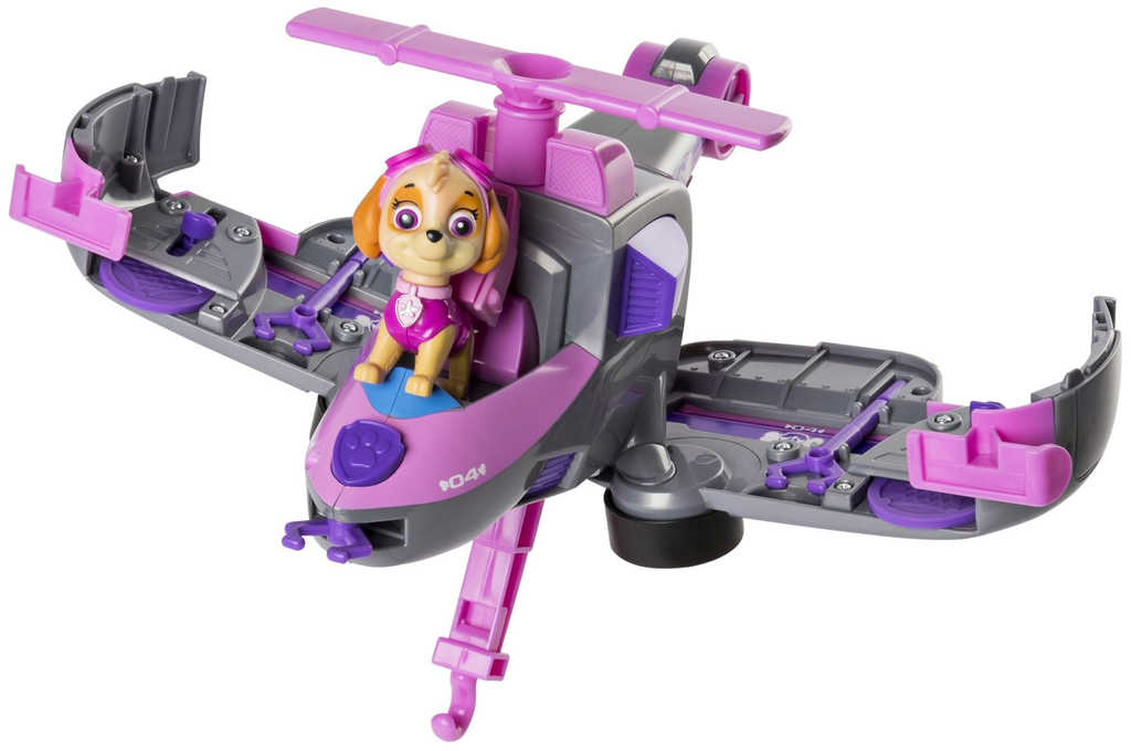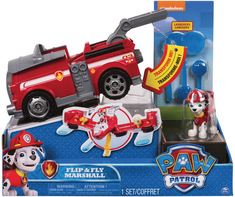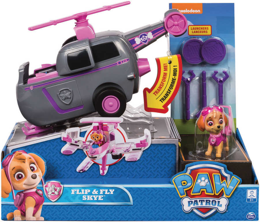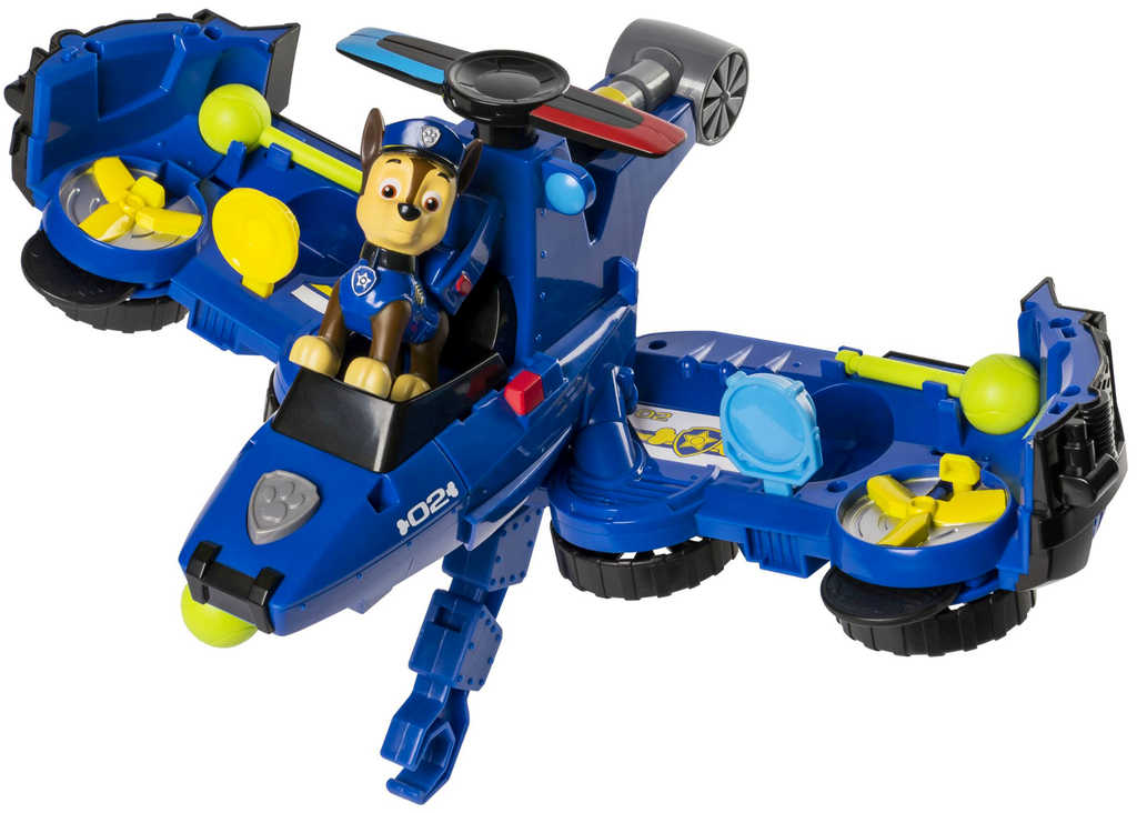 Záchranná vozidla Paw Patrol s figurkou a doplňky. Jednoduchou transformací změníte vozidlo na létající záchranný stroj připravený na záchrannou akci. Letouny vystřelují projektily a disky a mají záchranný hák, kterým mohou sebrat ze země zachraňované kamarády.
