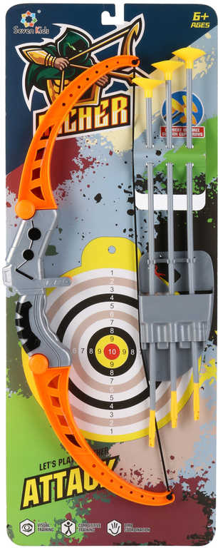 Luk a 3 šípy s přísavkami herní set na kartě plast