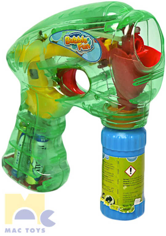 Bublifuková pistole, která při výrobě bublin svítí. Zmáčkni spoušť a sleduj záplavu bublin.