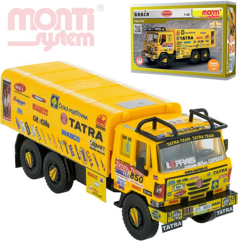 Dětská stavebnice Monti System č.77 – BABČA TATRA 815 – I tento model je inspirován skutečnou Tatrou 815 6×6, která se účastnila v roce 2009 jako doprovodný vůz slavné rallye Paříž – Dakar. Součástí balení jsou samozřejmě i polepy, které jsou věrnou kopií originálních samolepek.