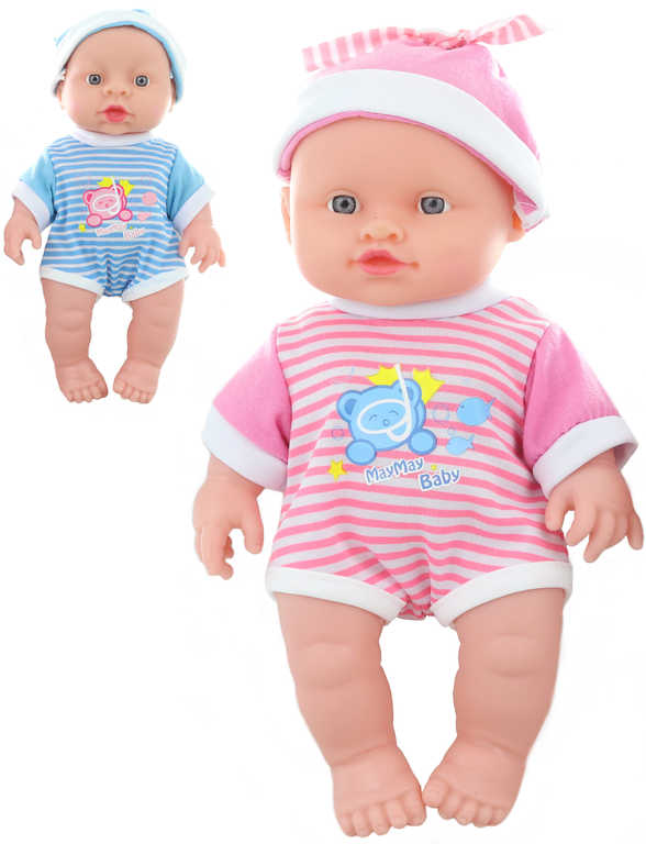 Roztomilé miminko batole – panenka oblečená do pruhovaného pyžámka a čepičky. Oblečení lze sundat, je na suchý zip. Panenka má tvrdé plastové tělíčko. Hračka ve dvou barevných variantách. Baleno v