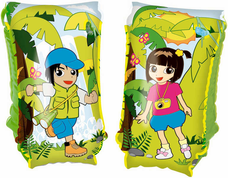 1 pár nafukovacích dětských rukávků na plavání s motivem z džungle pro děti (holčička a fotoaparát nebo chlapeček a dalekohled)