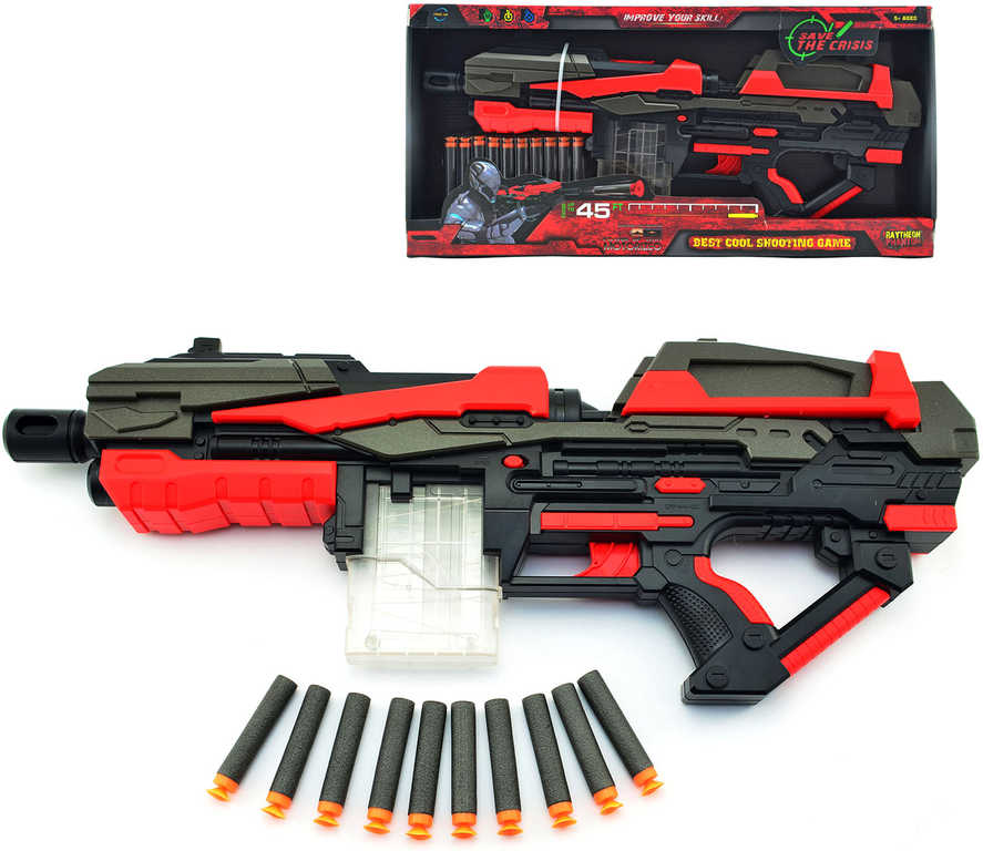 ***Kvalitní pistole na pěnové náboje 10ks plast 54cm na baterie potěší každého kluka, který fandí dětským zbraním.